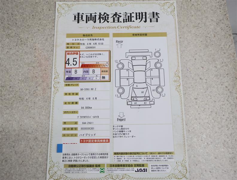詳細及び現状の車両状態につきましては、店舗スタッフまでお尋ねください。 - 注2)上記と同様の評価点・状態表を「車両検査証明書」として店舗の展示車両に搭載しております。