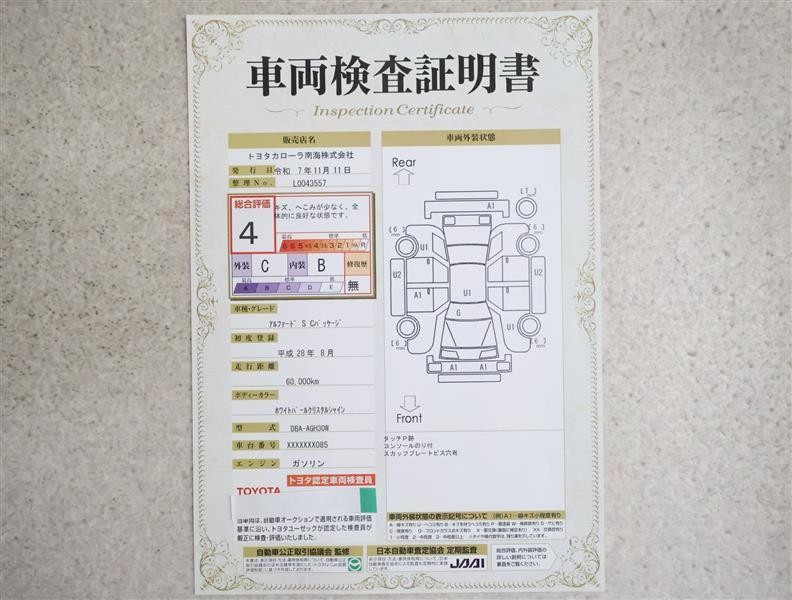 詳細及び現状の車両状態につきましては、店舗スタッフまでお尋ねください。 - 注2)上記と同様の評価点・状態表を「車両検査証明書」として店舗の展示車両に搭載しております。