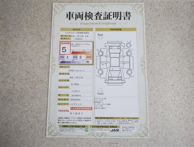 詳細及び現状の車両状態につきましては、店舗スタッフまでお尋ねください。 - 注2)上記と同様の評価点・状態表を「車両検査証明書」として店舗の展示車両に搭載しております。