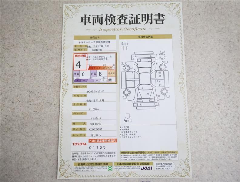 詳細及び現状の車両状態につきましては、店舗スタッフまでお尋ねください。 - 注2)上記と同様の評価点・状態表を「車両検査証明書」として店舗の展示車両に搭載しております。