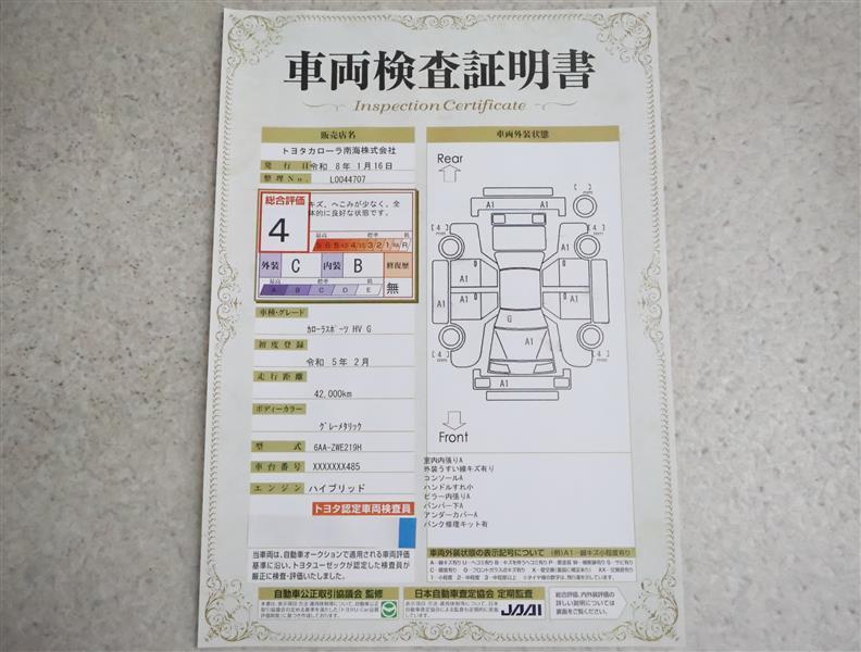 詳細及び現状の車両状態につきましては、店舗スタッフまでお尋ねください。 - 注2)上記と同様の評価点・状態表を「車両検査証明書」として店舗の展示車両に搭載しております。