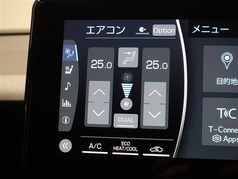 | フロントエアコン | オート | リヤエアコン | - |