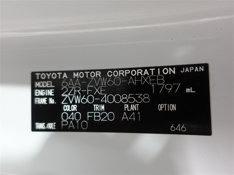 店舗管理ナンバー【364018864011】車台番号(下3桁)【538】