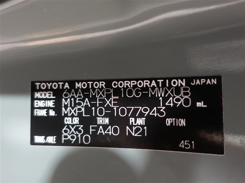 店舗管理ナンバー【364018881519】車台番号(下3桁)【943】