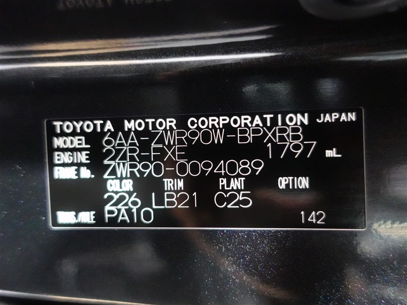 店舗管理ナンバー【364018892804】車台番号(下3桁)【089】