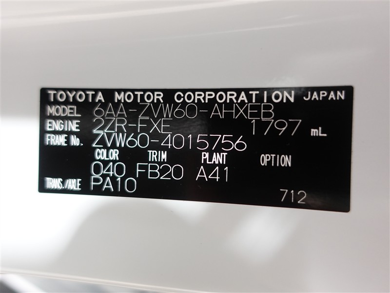 店舗管理ナンバー【364019074013】車台番号(下3桁)【756】