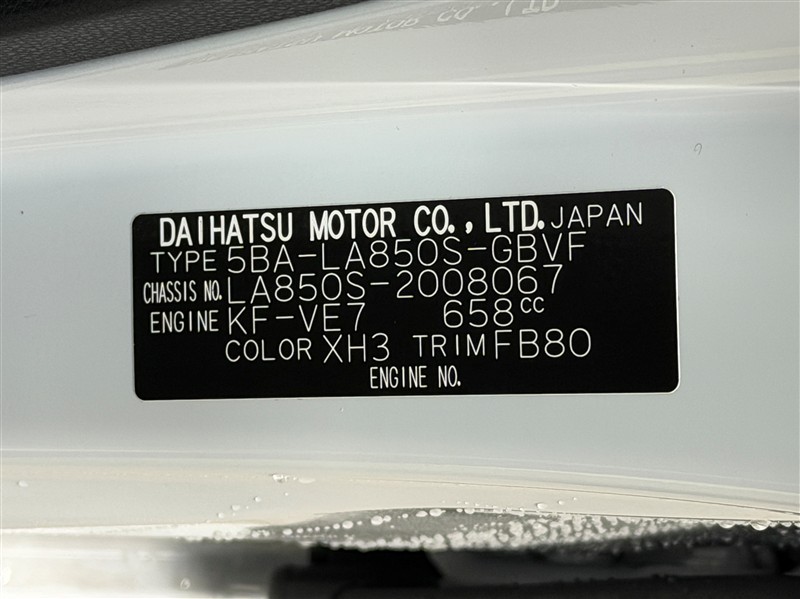 店舗管理ナンバー【373010857619】車台番号(下3桁)【067】