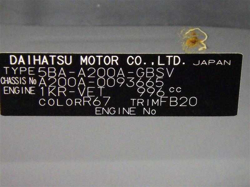 店舗管理ナンバー【385012334095】車台番号(下3桁)【665】