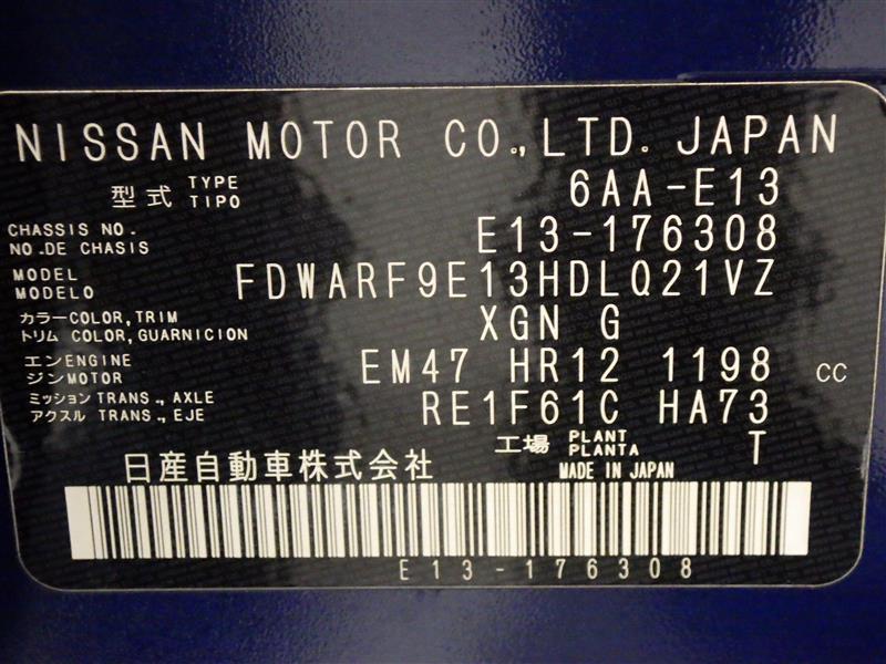 店舗管理ナンバー【385012517173】車台番号(下3桁)【308】