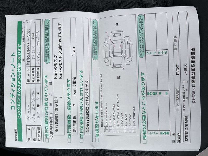 詳細及び現状の車両状態につきましては、店舗スタッフまでお尋ねください。 - 注2)上記と同様の評価点・状態表を「車両検査証明書」として店舗の展示車両に搭載しております。