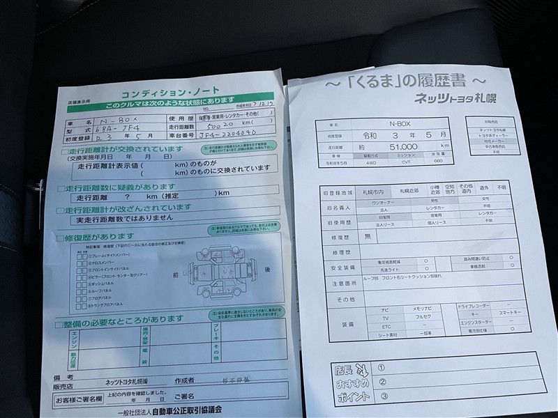 | ボディカラー | クロ | 修復歴 | なし |