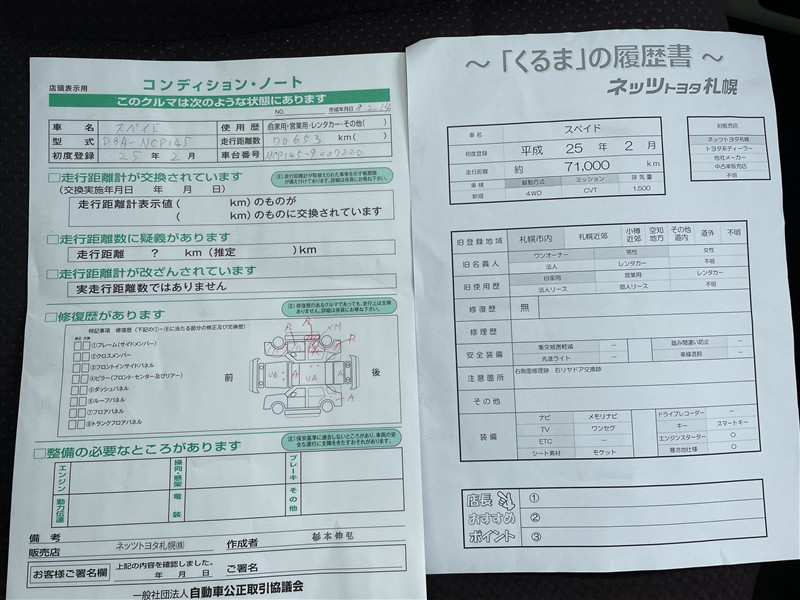 | 走行距離 | 71,000km | 修復歴 | なし |