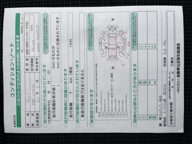 「修復歴あり」の場合、修復部位の詳細につきましては、販売店へお問合せください。