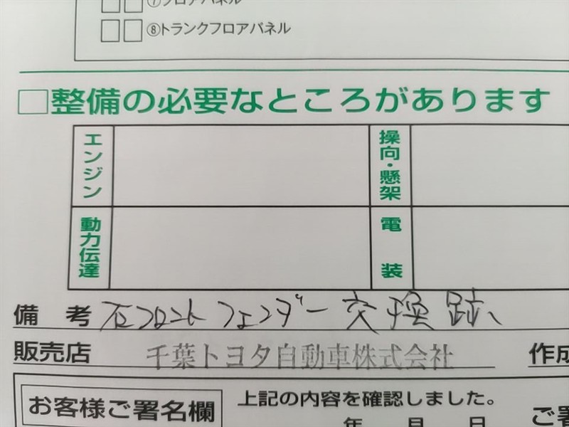 - 「定期点検整備なし(要整備箇所あり)」の場合、整備箇所につきましては、販売店へお問合せください。