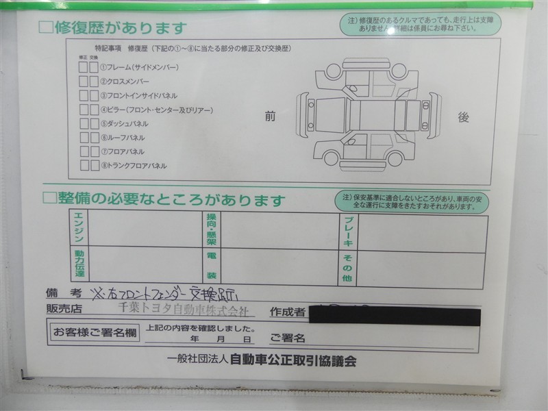 - 「修復歴あり」の場合、修復部位の詳細につきましては、販売店へお問合せください。