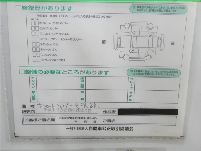 - 「修復歴あり」の場合、修復部位の詳細につきましては、販売店へお問合せください。