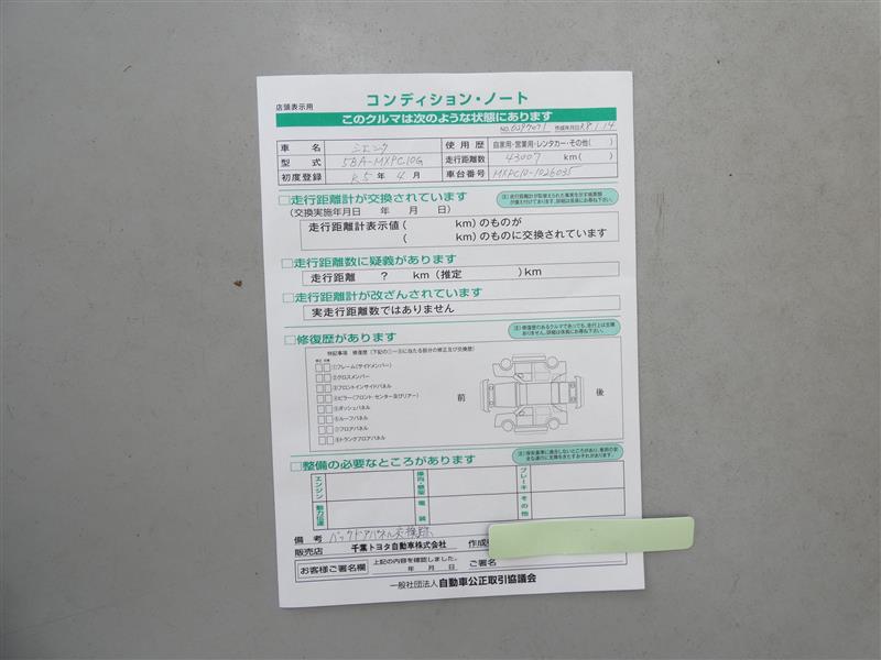 詳細及び現状の車両状態につきましては、店舗スタッフまでお尋ねください。 - 注2)上記と同様の評価点・状態表を「車両検査証明書」として店舗の展示車両に搭載しております。