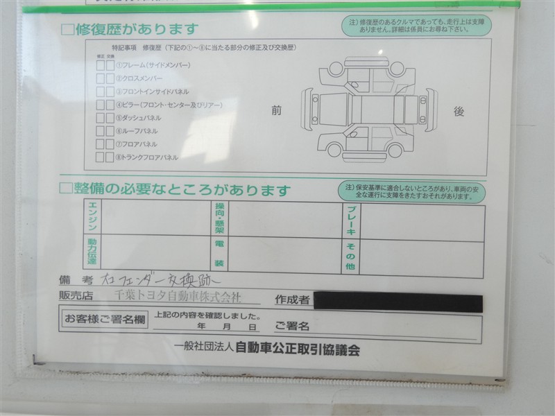 - 「修復歴あり」の場合、修復部位の詳細につきましては、販売店へお問合せください。