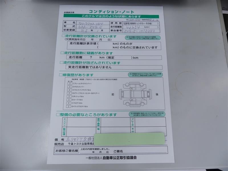 詳細及び現状の車両状態につきましては、店舗スタッフまでお尋ねください。 - 注2)上記と同様の評価点・状態表を「車両検査証明書」として店舗の展示車両に搭載しております。
