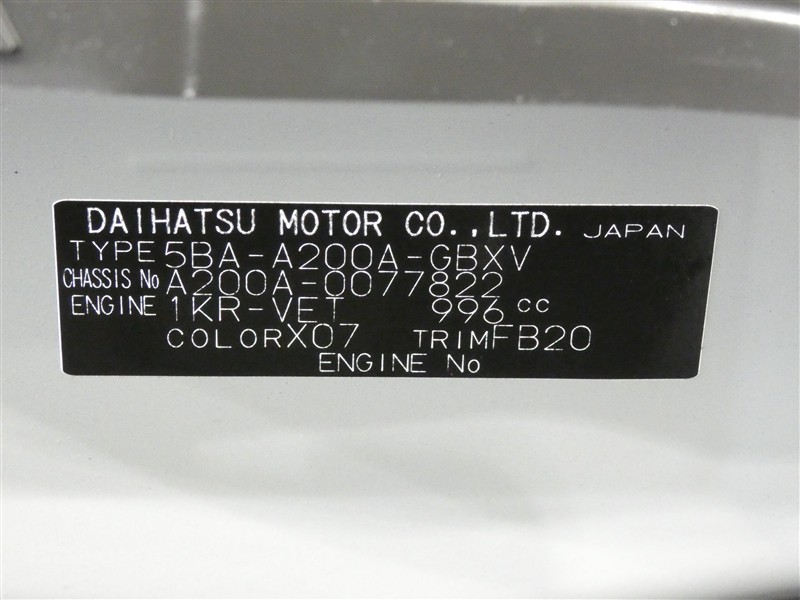 店舗管理ナンバー【435016307670】車台番号(下3桁)【822】