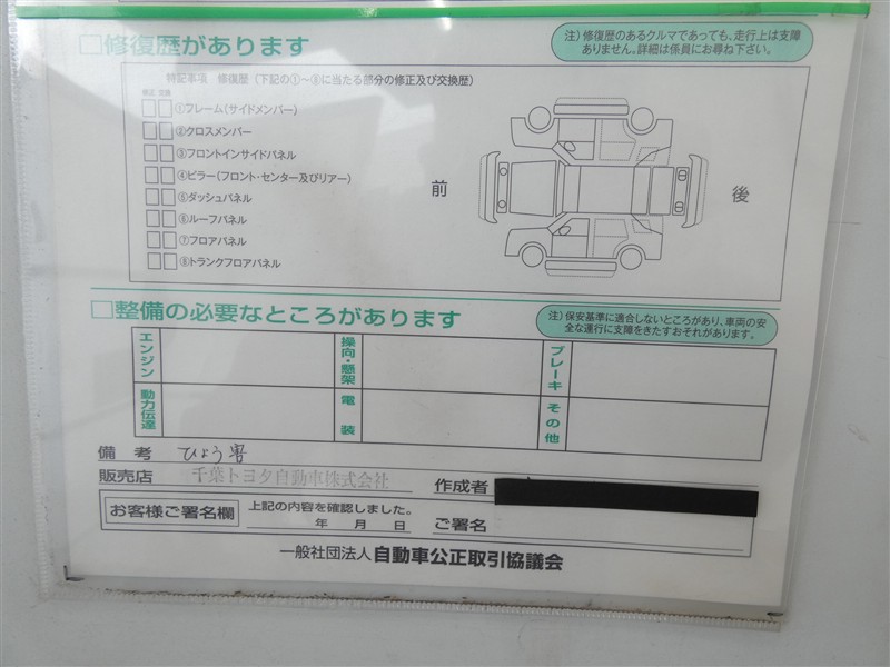 - 「定期点検整備なし(要整備箇所あり)」の場合、整備箇所につきましては、販売店へお問合せください。