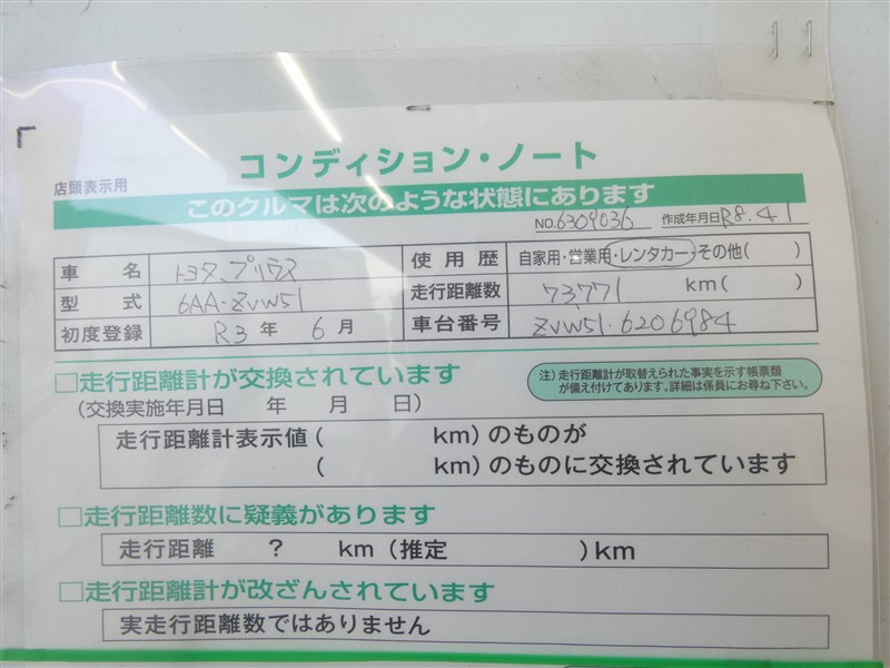 詳細及び現状の車両状態につきましては、店舗スタッフまでお尋ねください。 - 注2)上記と同様の評価点・状態表を「車両検査証明書」として店舗の展示車両に搭載しております。