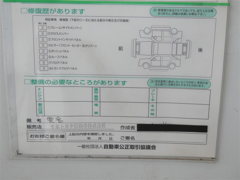 - 「修復歴あり」の場合、修復部位の詳細につきましては、販売店へお問合せください。