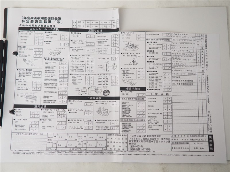 - 「定期点検整備なし(要整備箇所あり)」の場合、整備箇所につきましては、販売店へお問合せください。