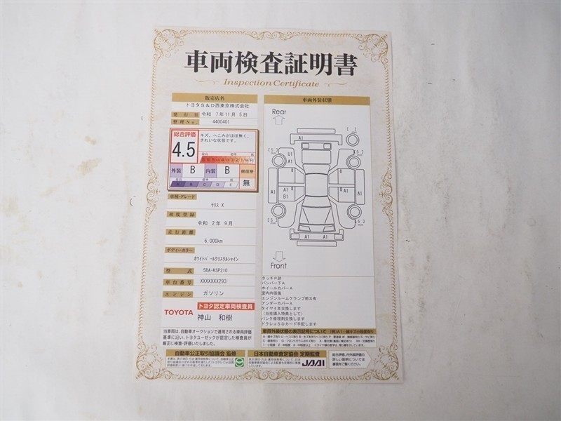 - 表示項目・方法・運用体制等について、自動車公正取引協議会の定める基準を満たした「トヨタU-Car品質評価制度」に基づき作成しております。