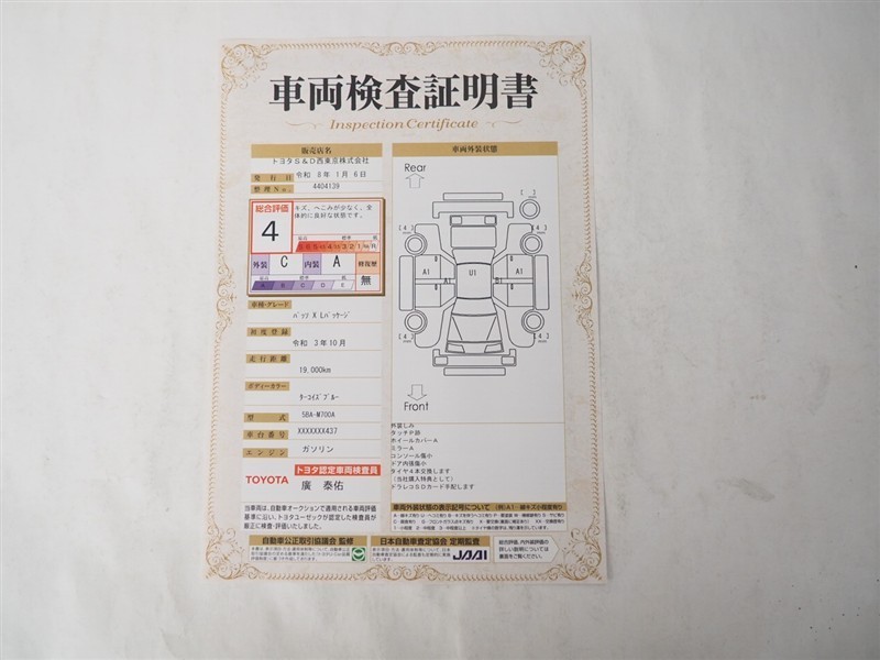 表示項目・方法・運用体制等について、自動車公正取引協議会の定める基準を満たした「トヨタU-Car品質評価制度」に基づき作成しております。