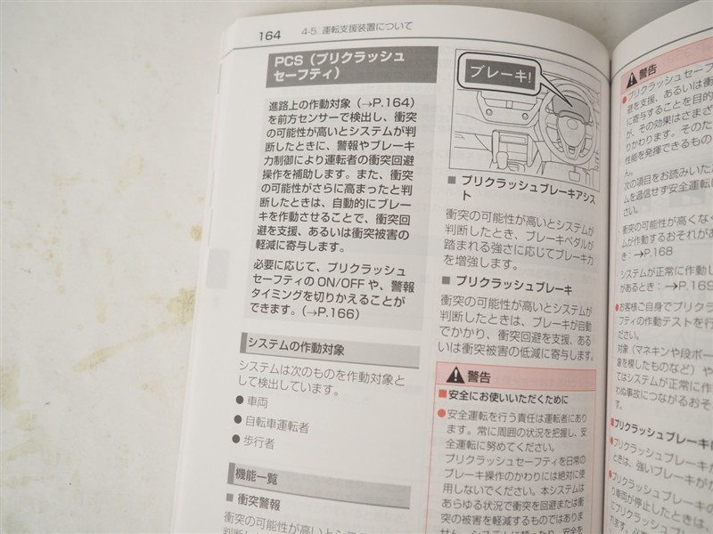 - 予防安全装置の各機能の作動には、速度や対象物等の条件があります。また、道路状況、車両状態、天候等により作動しない場合があります。