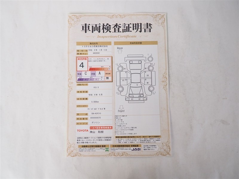 - 表示項目・方法・運用体制等について、自動車公正取引協議会の定める基準を満たした「トヨタU-Car品質評価制度」に基づき作成しております。