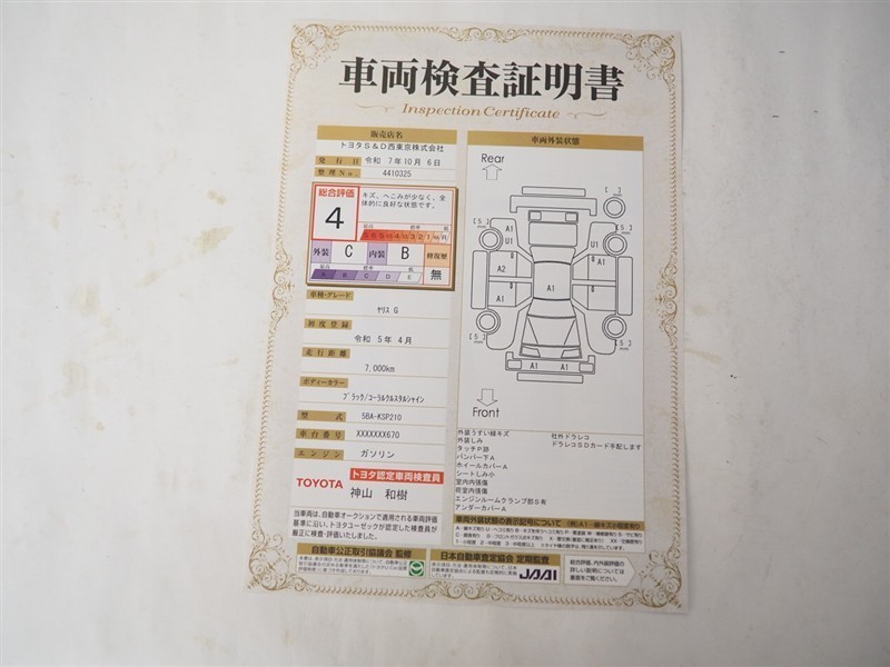 - 表示項目・方法・運用体制等について、自動車公正取引協議会の定める基準を満たした「トヨタU-Car品質評価制度」に基づき作成しております。
