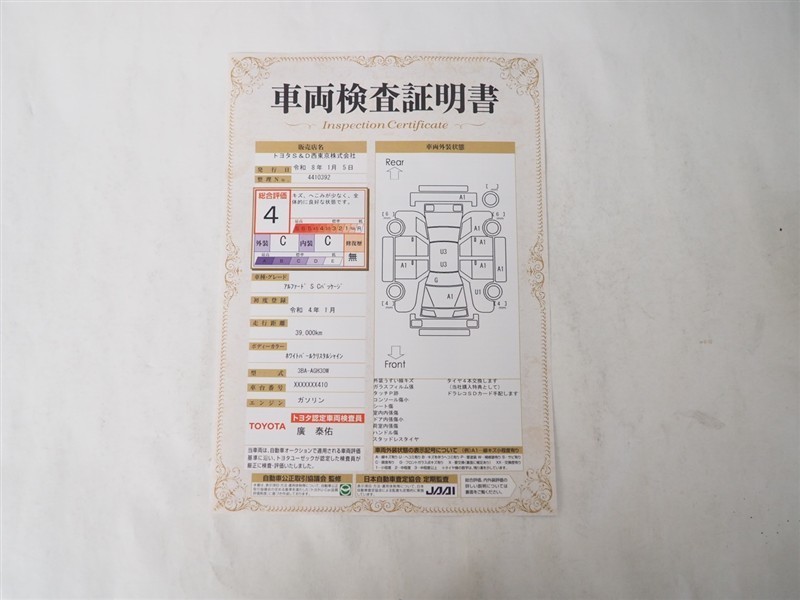 詳細及び現状の車両状態につきましては、店舗スタッフまでお尋ねください。 - 注2)上記と同様の評価点・状態表を「車両検査証明書」として店舗の展示車両に搭載しております。