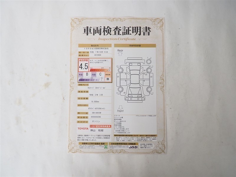 | 内装評価 | C | 標準的に使用されていて、気になる使用感やいたみが若干あります。 | ![]() |