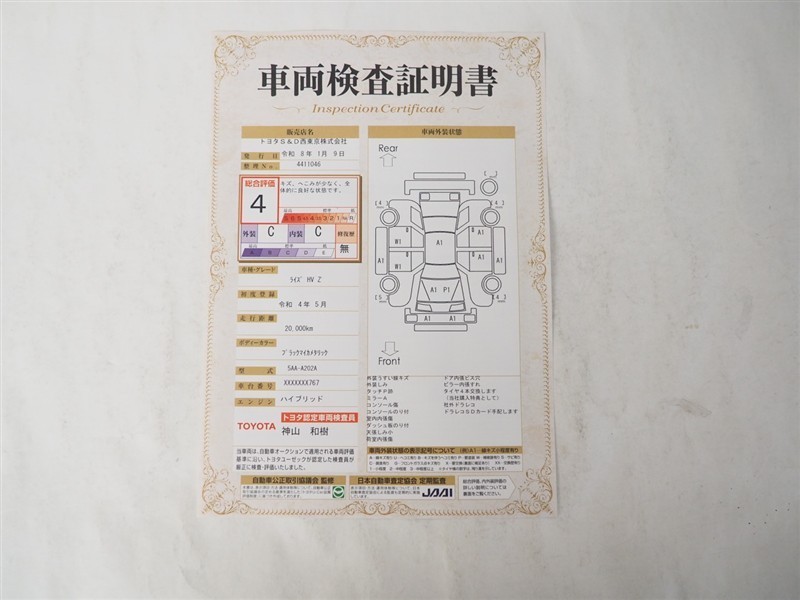詳細及び現状の車両状態につきましては、店舗スタッフまでお尋ねください。 - 注2)上記と同様の評価点・状態表を「車両検査証明書」として店舗の展示車両に搭載しております。