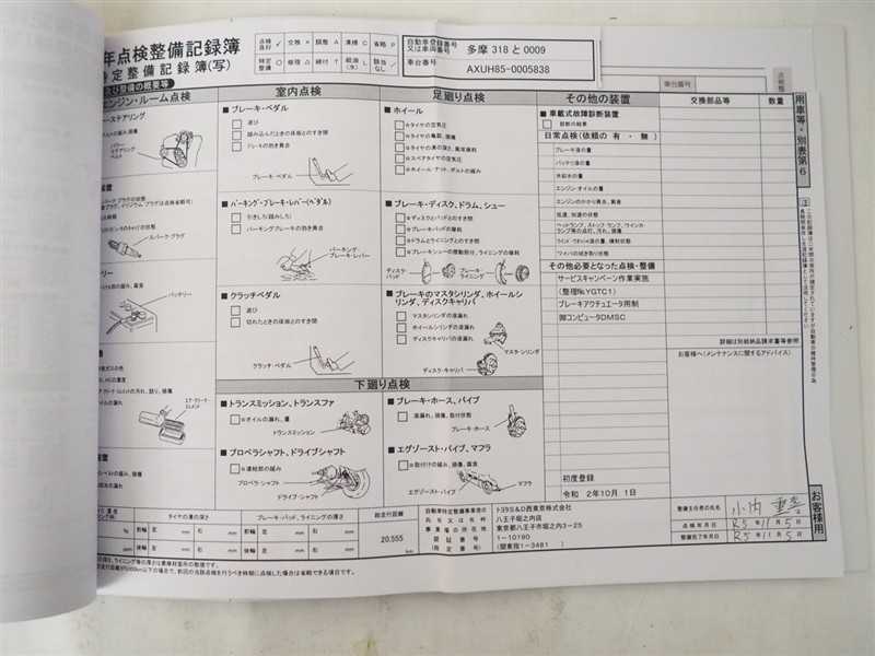 - 「定期点検整備なし(要整備箇所あり)」の場合、整備箇所につきましては、販売店へお問合せください。
