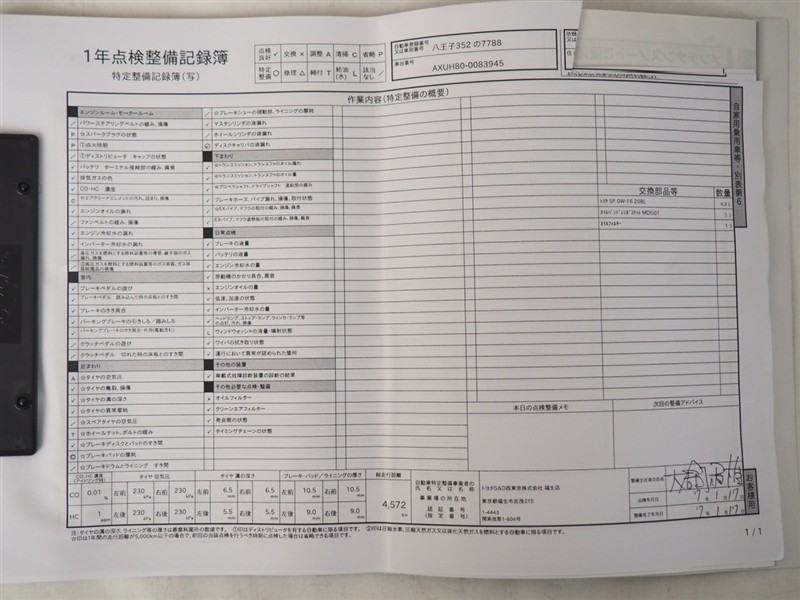- 「定期点検整備なし(要整備箇所あり)」の場合、整備箇所につきましては、販売店へお問合せください。