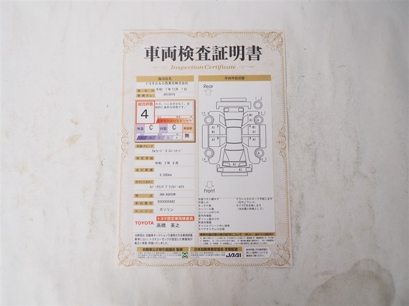 詳細及び現状の車両状態につきましては、店舗スタッフまでお尋ねください。 - 注2)上記と同様の評価点・状態表を「車両検査証明書」として店舗の展示車両に搭載しております。