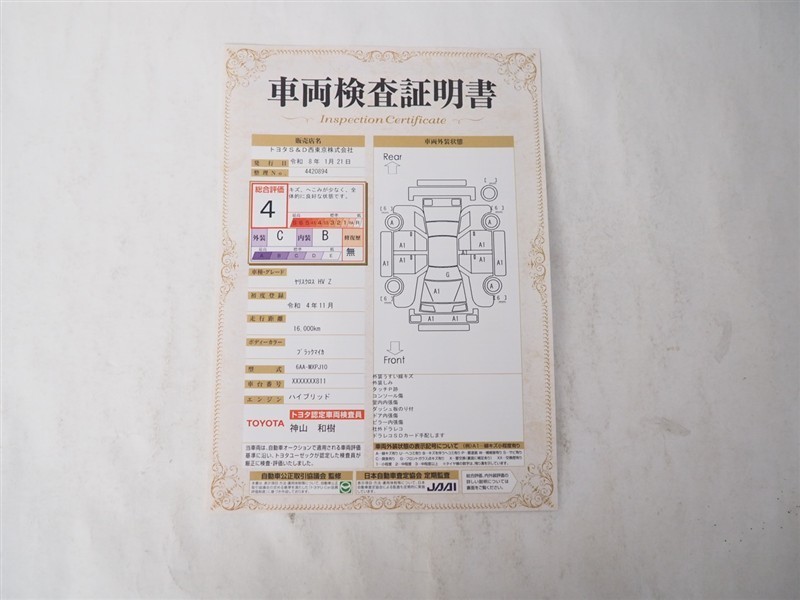 • 注2)上記と同様の評価点・状態表を「車両検査証明書」として店舗の展示車両に搭載しております。