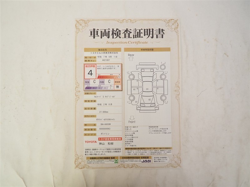 詳細及び現状の車両状態につきましては、店舗スタッフまでお尋ねください。 - 注2)上記と同様の評価点・状態表を「車両検査証明書」として店舗の展示車両に搭載しております。
