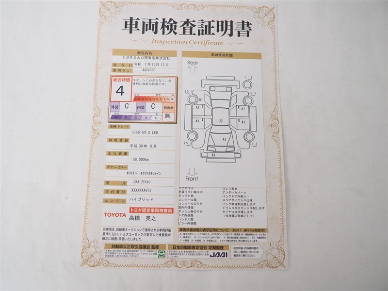 詳細及び現状の車両状態につきましては、店舗スタッフまでお尋ねください。 - 注2)上記と同様の評価点・状態表を「車両検査証明書」として店舗の展示車両に搭載しております。