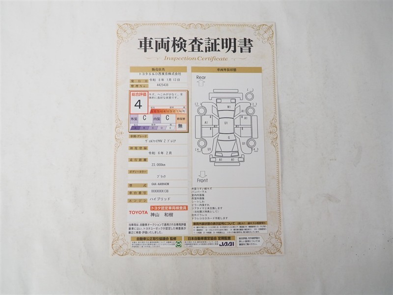 詳細及び現状の車両状態につきましては、店舗スタッフまでお尋ねください。 - 注2)上記と同様の評価点・状態表を「車両検査証明書」として店舗の展示車両に搭載しております。