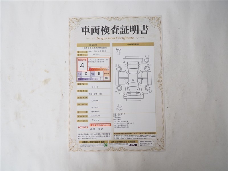 詳細及び現状の車両状態につきましては、店舗スタッフまでお尋ねください。 - 注2)上記と同様の評価点・状態表を「車両検査証明書」として店舗の展示車両に搭載しております。