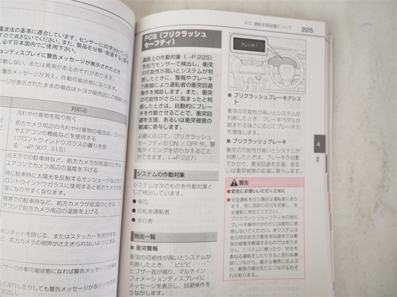 - 予防安全装置の各機能の作動には、速度や対象物等の条件があります。また、道路状況、車両状態、天候等により作動しない場合があります。