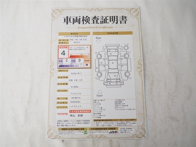 • 注1)本ページに掲載された評価は、車両検査実施時の車両状態を示したものです。