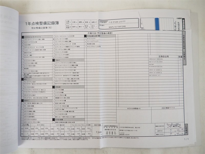 - 「定期点検整備なし(要整備箇所あり)」の場合、整備箇所につきましては、販売店へお問合せください。