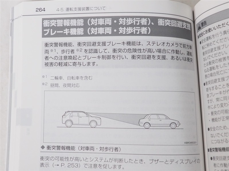 - 予防安全装置の各機能の作動には、速度や対象物等の条件があります。また、道路状況、車両状態、天候等により作動しない場合があります。