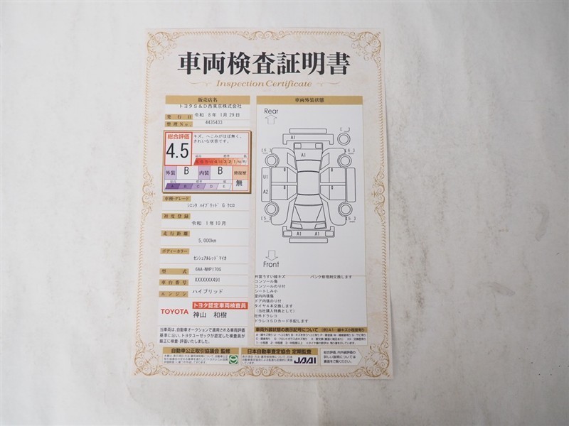 詳細及び現状の車両状態につきましては、店舗スタッフまでお尋ねください。 - 注2)上記と同様の評価点・状態表を「車両検査証明書」として店舗の展示車両に搭載しております。