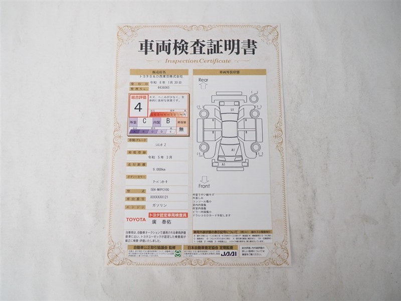 - 表示項目・方法・運用体制等について、自動車公正取引協議会の定める基準を満たした「トヨタU-Car品質評価制度」に基づき作成しております。